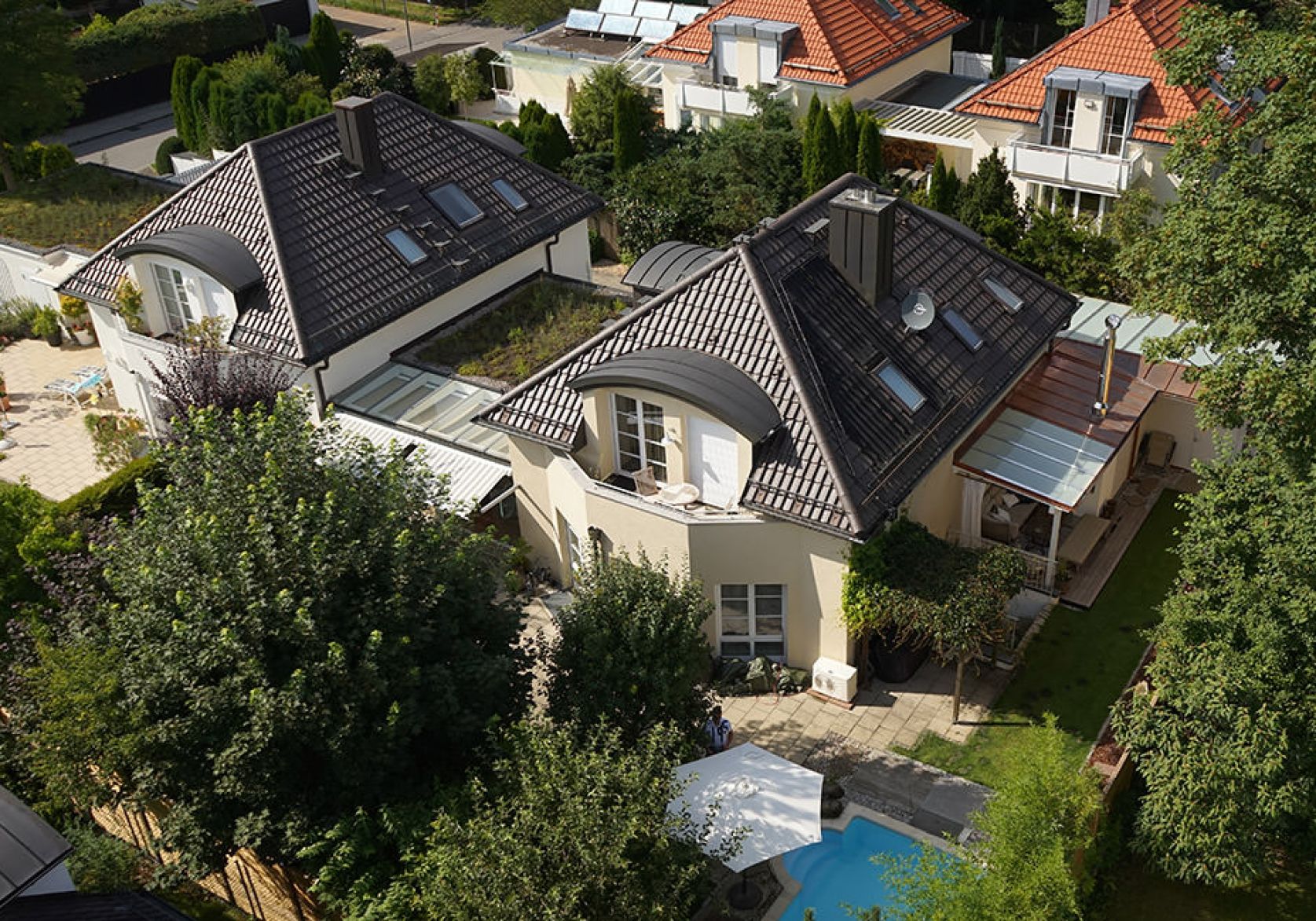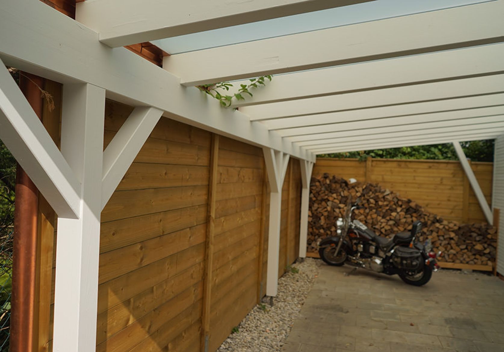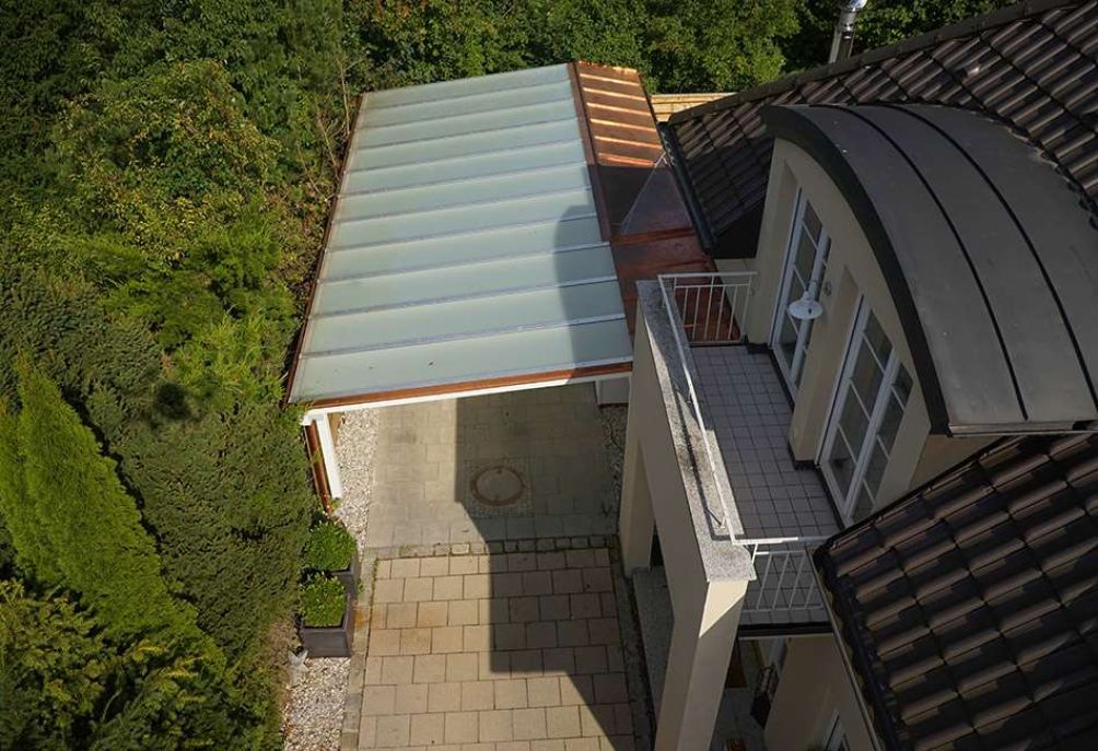 Carport mit integriertem Gartenhaus und Pergola in Grünwald Frank Zimmerei und Holzbau GmbH&Co.KG München - Header Linien Frank Zimmerei und Holzbau GmbH&Co.KG München - Header Hintergrund