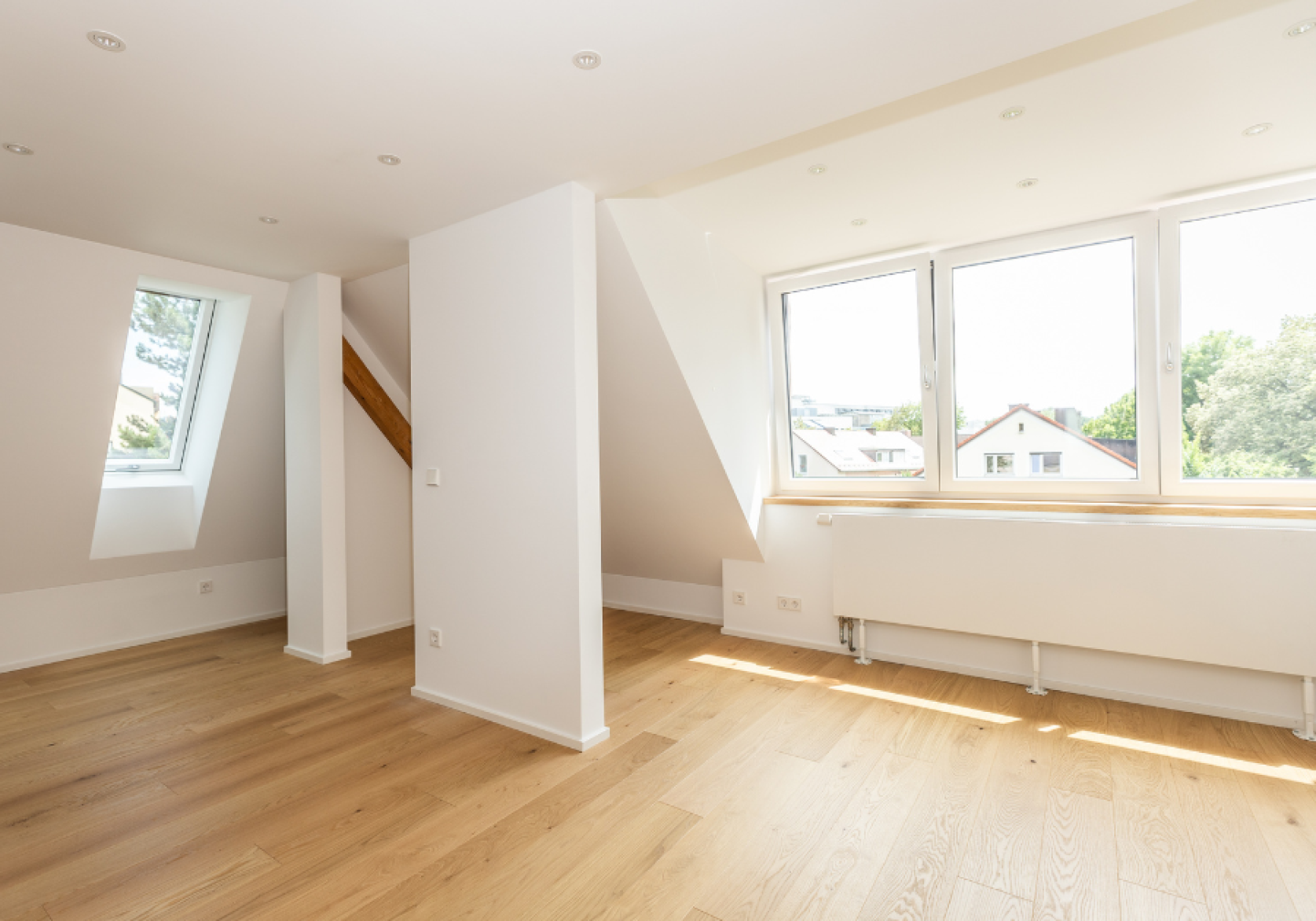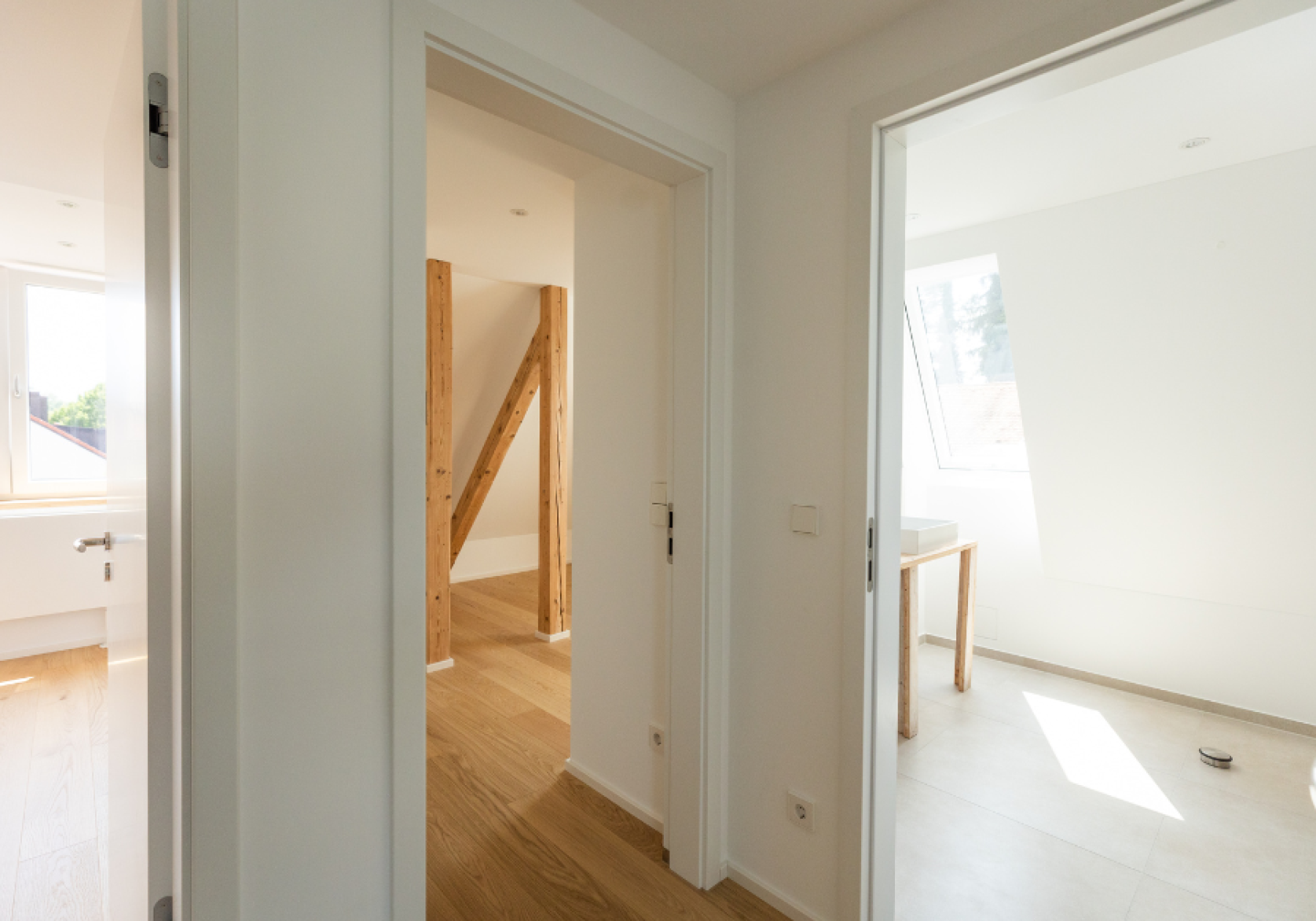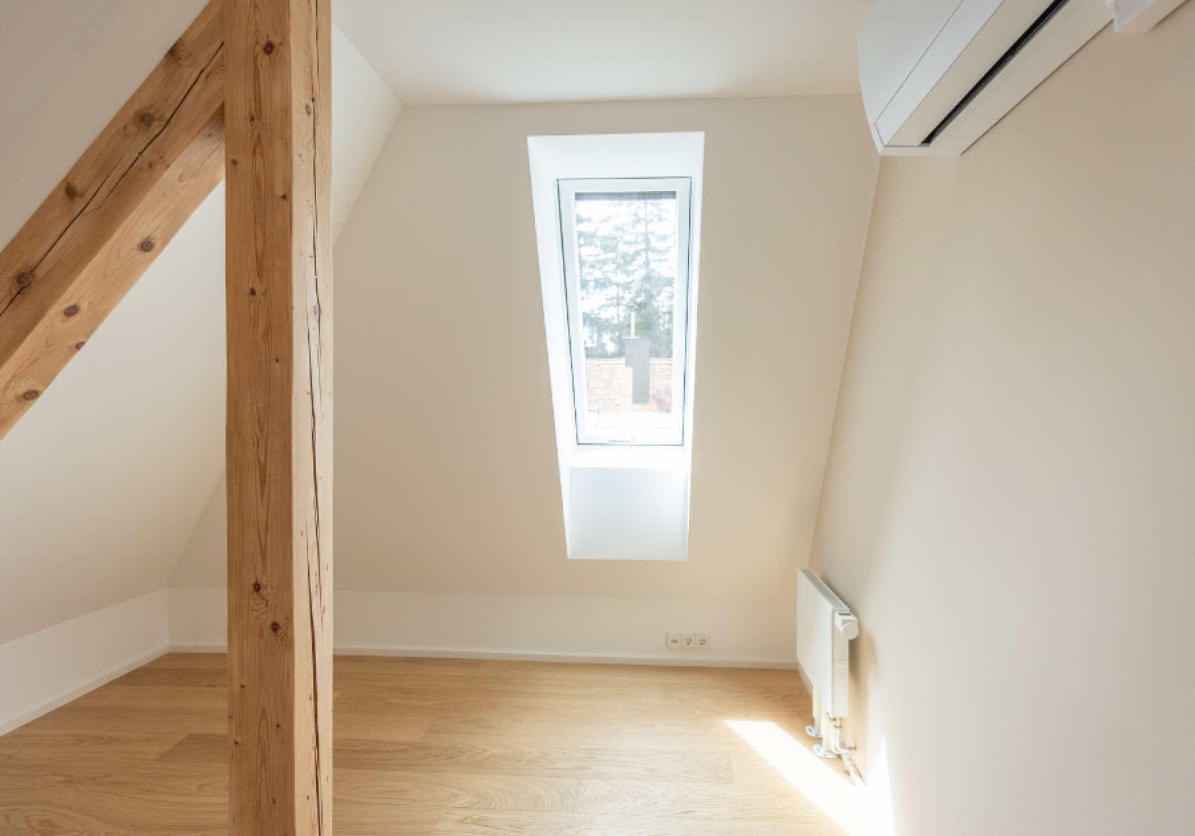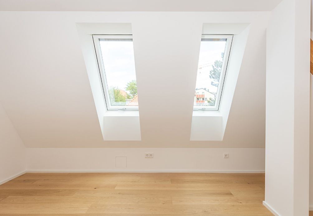 Dachausbau mit Sichtbalken aus dem Altbestand.