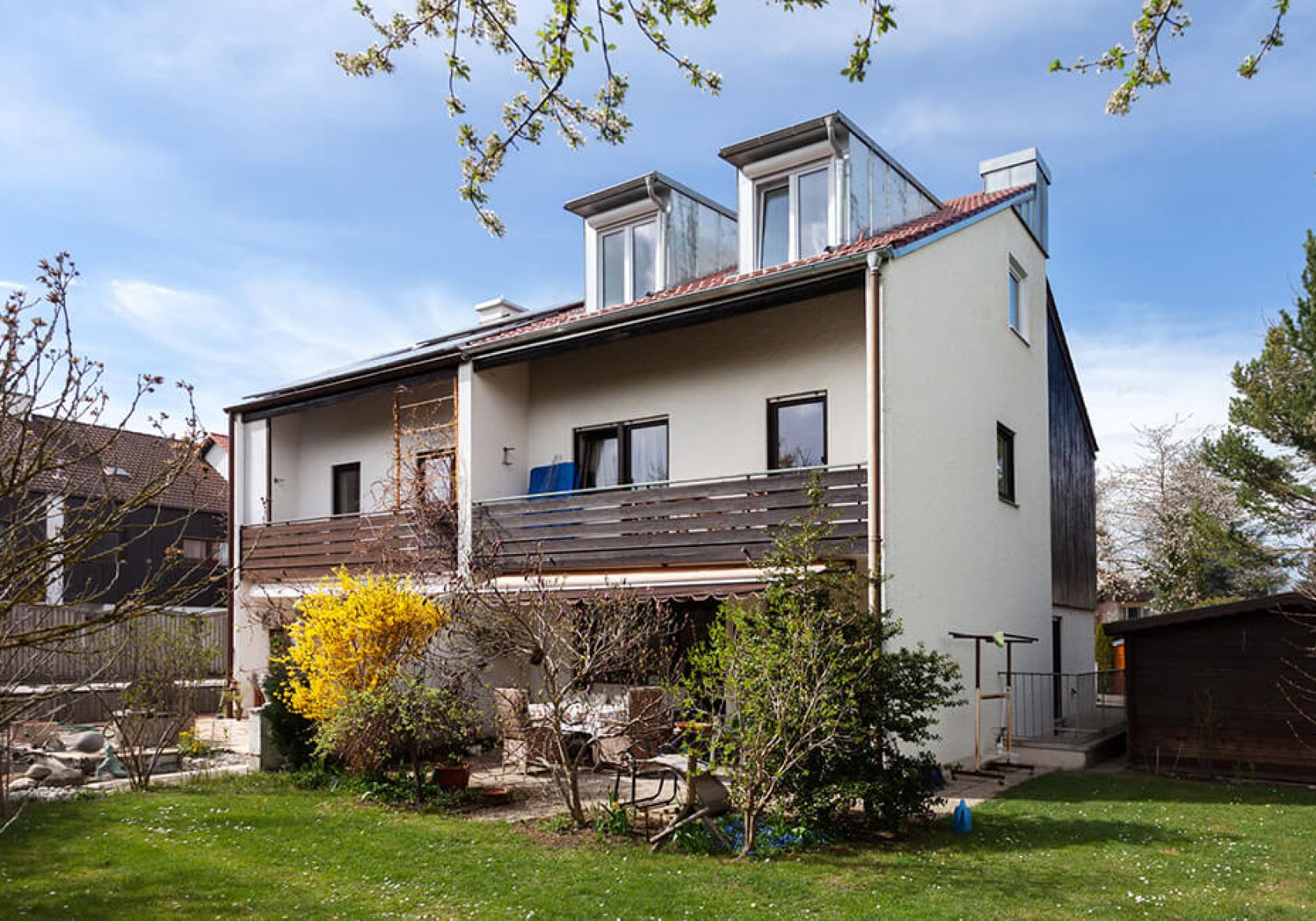 Dachgeschossausbau einer Doppelhaushälfte Frank Zimmerei und Holzbau GmbH&Co.KG München - Header Linien Frank Zimmerei und Holzbau GmbH&Co.KG München - Header Hintergrund