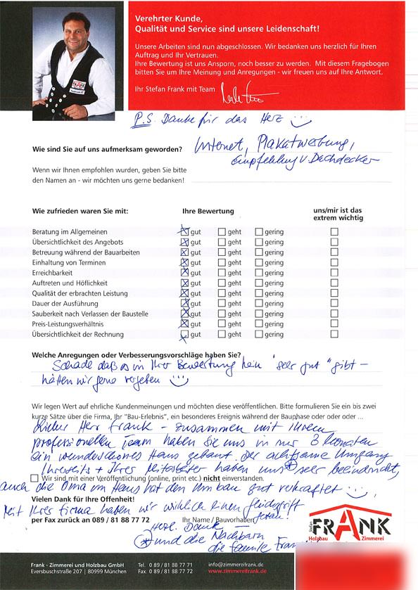 KILMARX-FRANK Zimmerei Muenchen - Blockzitat Anführungszeichen Schade, dass es in Ihrer Bewertung kein “sehr gut” gibt! KILMARX-FRANK Zimmerei Muenchen - Blockzitat Anführungszeichen