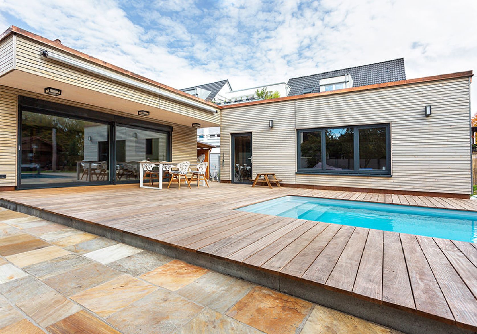 - Anbau in vorgefertigter Holzrahmenbauweise um die Bauzeit zu verkürzen